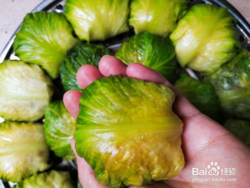 一切准备就绪,取片菜叶放置于一个小碗内,手稍微整一下呈凹状,方便包装,