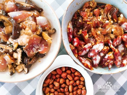 买回家的糯米一定要事先泡好,不能偷懒,我就是因为缩短了时间,最后的成品还有一点夹生,虽然不影响食用。我做了两个馅,一个是②香菇鸡肉,一个是①腊味瘦肉。②鸡腿肉去骨切成小块,加胡椒粉,盐,糖,生抽,一点老抽上色,适量食用油,和泡好的香菇一起抓匀腌制入味(香菇要切开,别忘了撒点白芝麻);①猪肉切片,下点盐,糖,蚝油,生老抽,一点料酒去肉腥,剁碎的蒜蓉和油腌制(喜欢虾米的也可以加进去),最后才放入切好的腊肠拌一拌就行,腊味一般都有味道的就不用腌了。