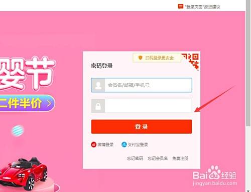 页面跳转后,如下图所示找到淘宝首页页面上的登入入口,并点击登入。等待页面跳转到登入页面。