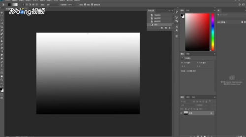 1打开ps软件,新建RGB文件,设置前景为黑色,背景为白色,左侧工具栏选择渐变工具,在画布上拉出黑白渐变。
