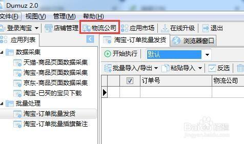 1.点击工具栏上【物流公司】