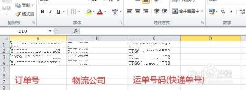 整理好需要发货的订单号及物流公司、运单号码(即快递单号),如图所示: