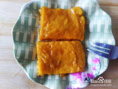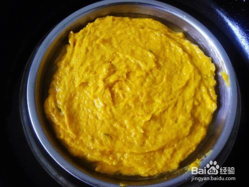 用一个大盘,里面用油刷过,把南瓜泥铺到盘中。
