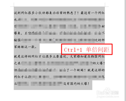 全选文字,直接按下“Ctrl+1”设置为单倍间距,如图