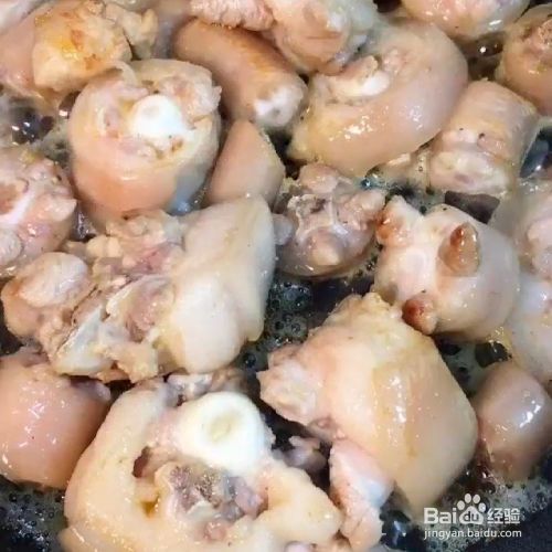 倒入沥干水分的猪尾巴,快速的翻炒上色。