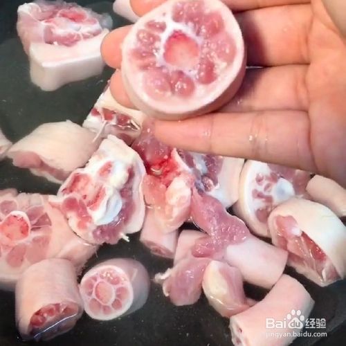 把猪尾巴清洗干净、切成小段凉水下锅,大火煮出血沫。