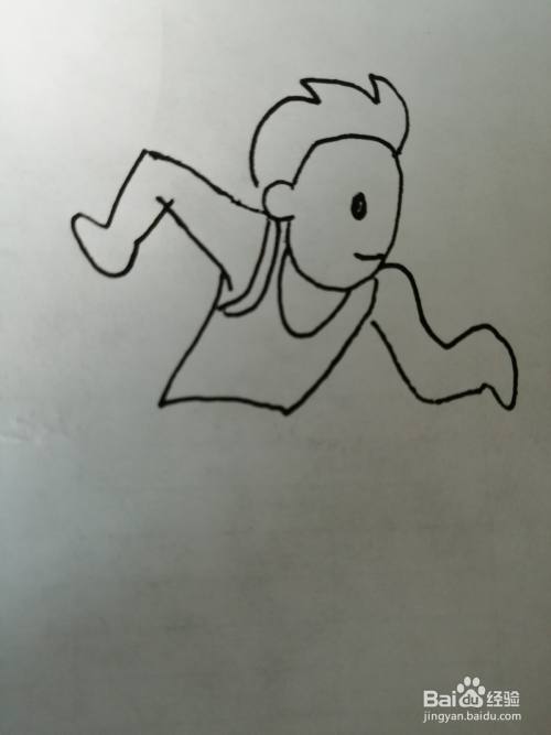 第七步,最后把跑步的小孩的两条大长腿画出来。跑步的小孩就画好了。
