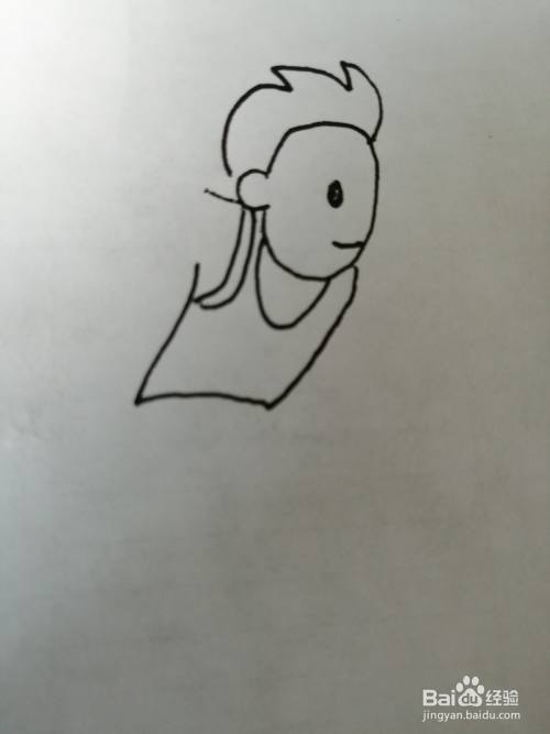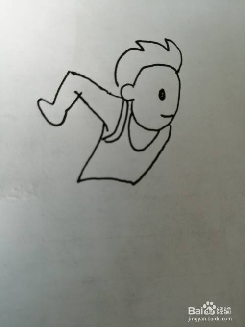 第四步,接着把简笔画小孩的身上穿的小背心画出来。