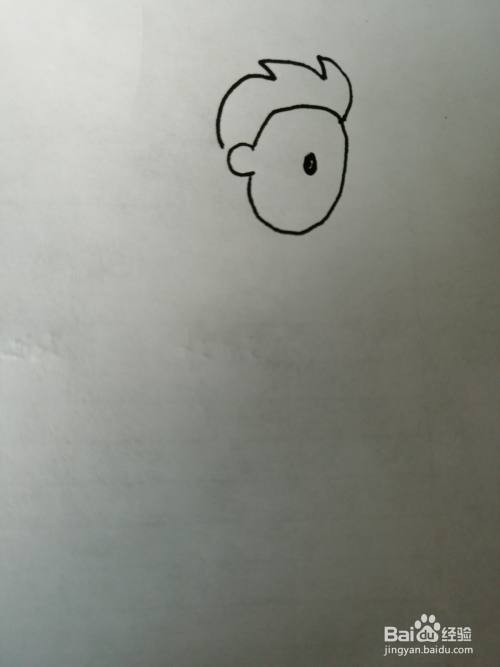 第二步,接着画出简笔画小孩的头发部分。