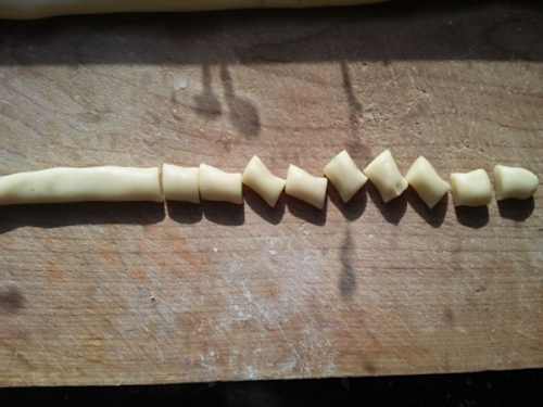8取一小份面团用手搓成手指粗的小条,再切成大小均匀的等分用手搓圆