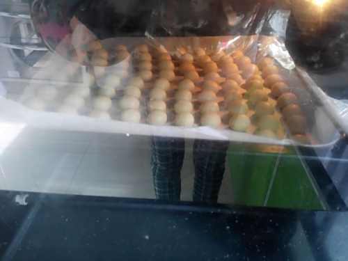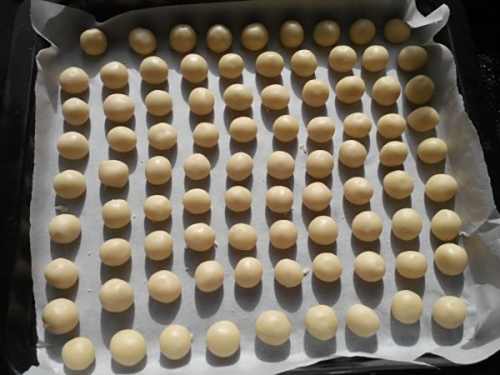 9烤盘内垫上油纸,把搓圆的馒头胚放在烤盘内,中间最好隔一点距离哦。