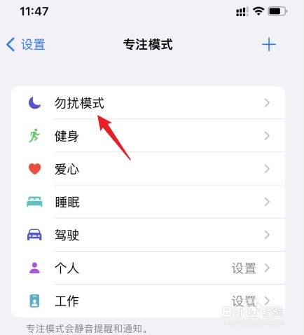 选择手机的勿扰模式选项。