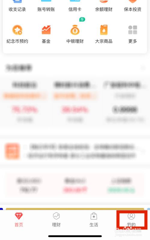 打开手机上的中国银行APP,进入中国银行手机银行页面后点击右下角的“我的”。