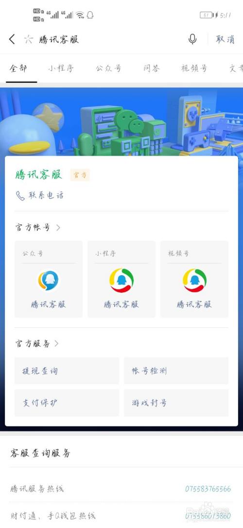 输入【腾讯客服】,在搜索结果中点击打开【腾讯客服小程序】
