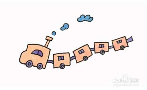 一辆奔腾的小火车,发出呜呜呜的声音,一起来看看怎么画一辆长长的卡通小火车吧。