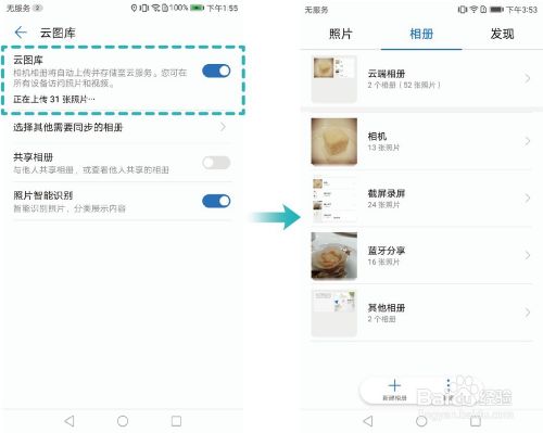 进入【图库】,点击【更多】>【设置】登录华为帐号,开启【云图库】同步功能。开启该功能后,手机会在WLAN 环境下,将【相机相册】中的图片和视频自动同步至云端,除此之外,您还可以选择将其他相册的图片同步到云端。