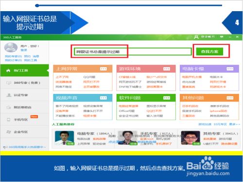 如图,输入网银证书总是提示过期,然后点击查找方案。