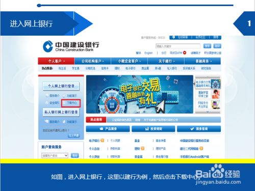 如图,进入网上银行,这里以建行为例,然后点击下载中心。