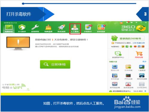 如图,打开杀毒软件,然后点击人工服务。