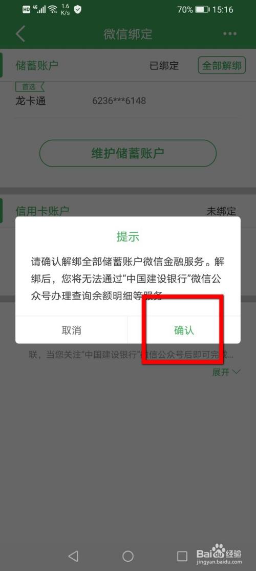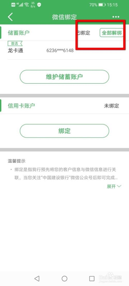 中国建设银行卡绑定微信号可以直接通过公众号查询余额,下面就分享一下怎么解除绑定。