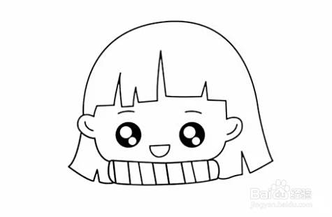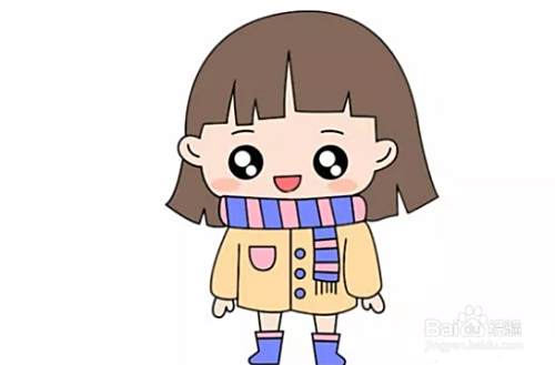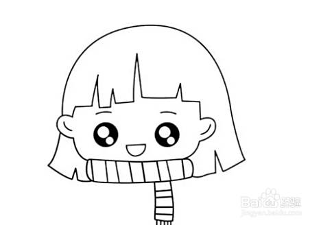 在小女孩头部的下方画出一条长长的围巾