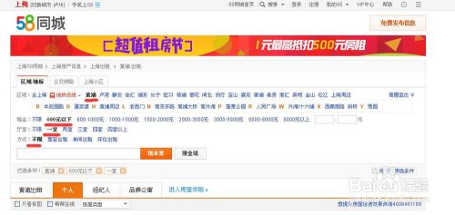 首先是进入首页,定位为任意地点如上海(其他地方试用以下方法分辨)点击租房页面,个人设置搜索条件:区域——黄浦,租金——600以下,厅室——1厅,方式——不限,得到以下结果,接下来开始分辨三种常见假房源。