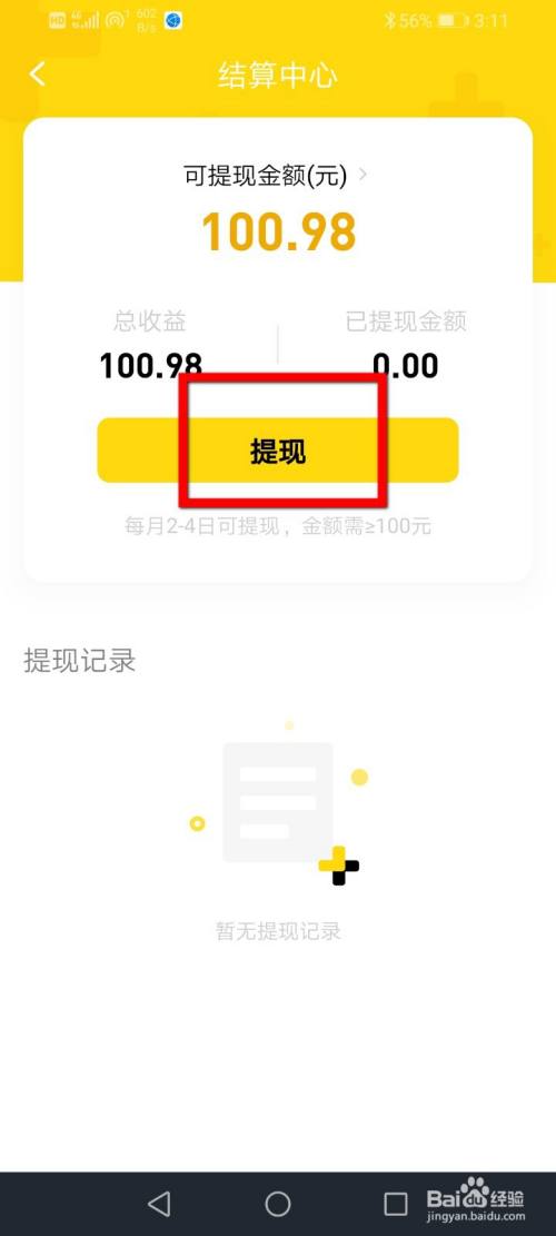 进入提现界面以后点击下方的提现按钮。