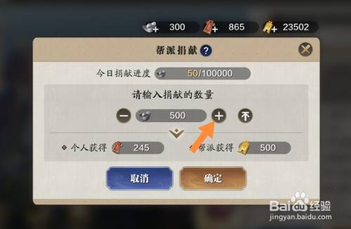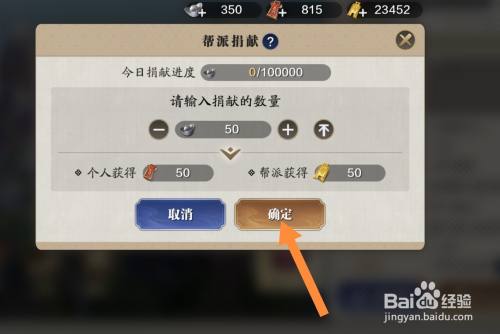 捐献银两,点击确定。