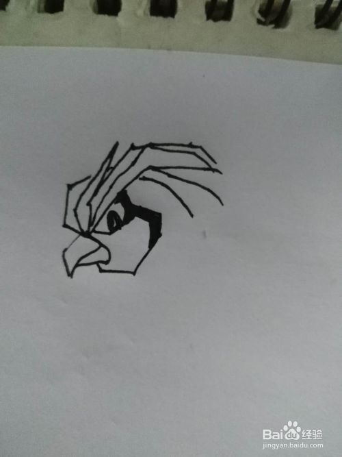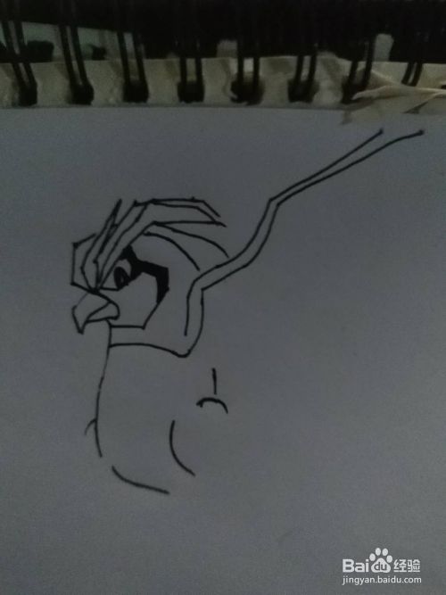 根据鸟嘴的位置画上顶部的羽毛,比较细长;