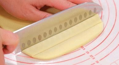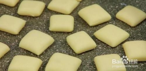 将面团擀成薄饼形状,再切分成等量的小方块形状。