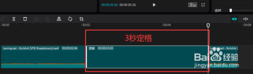 如果你感觉定格时间太短或者太长,可以随时使用选择工具拖动定格画面两端位置,以改变定格持续时间,如图所示。