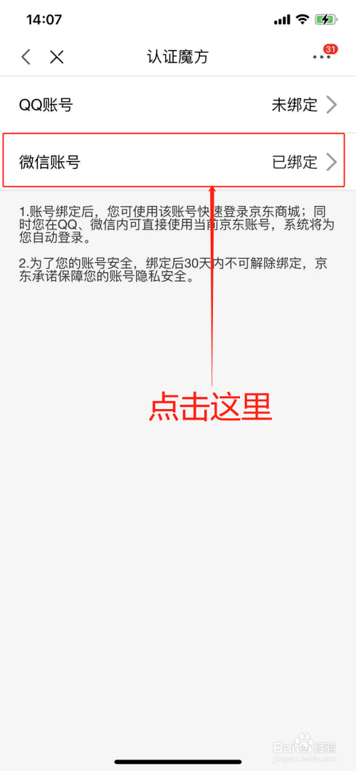 在弹出的对话框中点击解除绑定即可解除当前京东账号与微信账号的关联绑定。