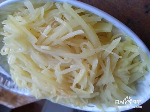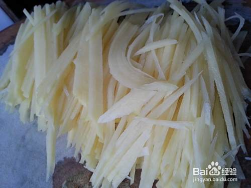 准备土豆,去皮,清洗干净,切成细丝。