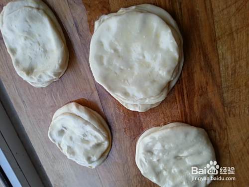 取饼坯,擀成大饼。