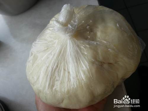 将和好的面团放入保鲜袋中。