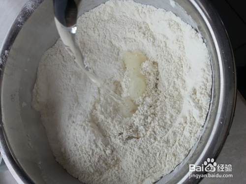 剩下三分之一面粉分次加入凉水和面。