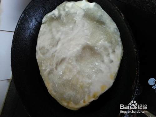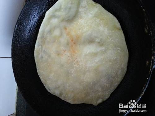烙至起大泡,翻面继续烙。