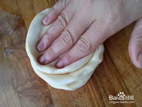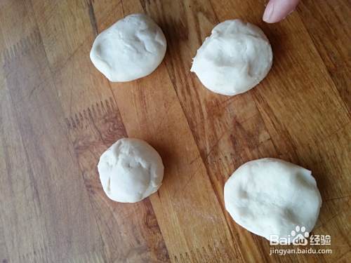 面团醒好后取出,分成大小差不多的小剂子。用手压下。