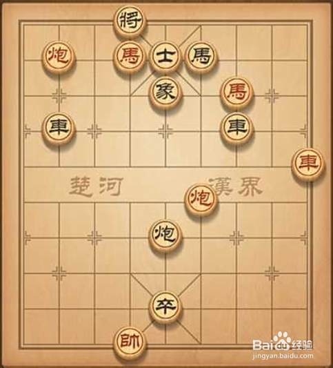 此关与上一关有些类似,通过车步步将军,分别吃掉马,象,士,炮。原棋局如下。