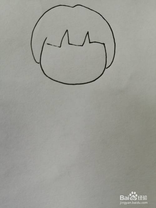 第一步,我们先把聪明的小女孩的头部轮廓画出来,注意小女孩刘海细节的画法。