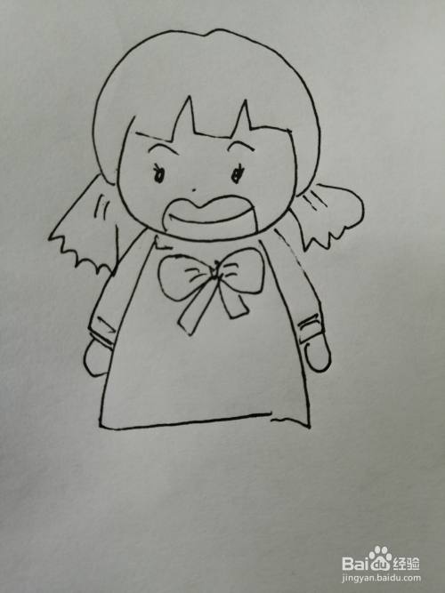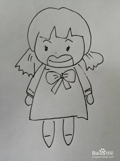 第七步,最后把聪明的小女孩把两条腿画出来,聪明的小女孩就画好了。