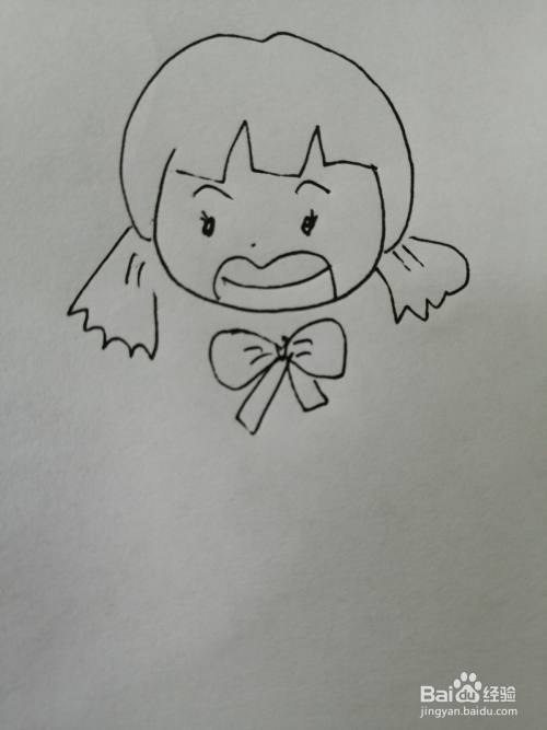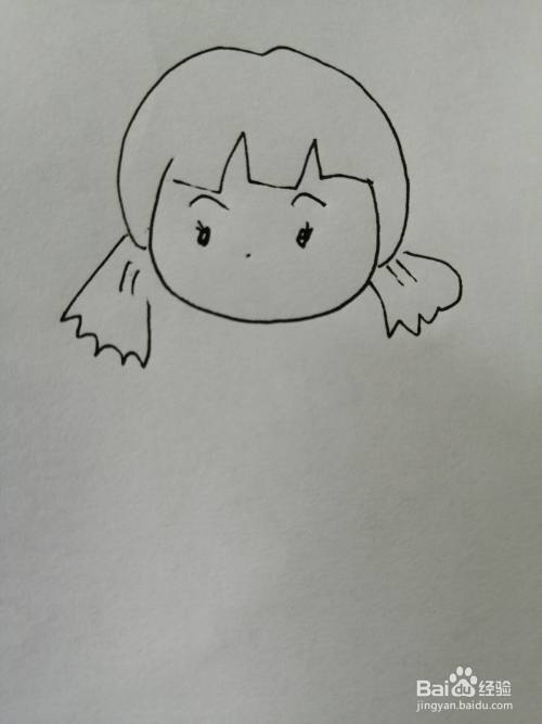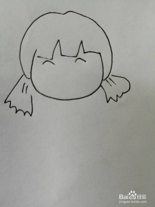 第二步,接着继续画出聪明的小女孩的两个可爱的小辫子,小辫子画法比较简单。
