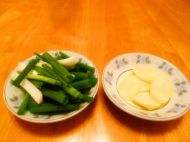 4配料:姜切片;葱切段。
