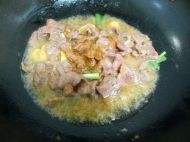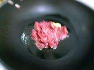 6倒入牛肉迅速翻炒汁肉色变白,捞出沥油。
