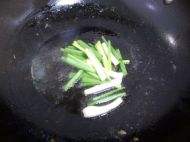 7锅中留油,爆香葱段。