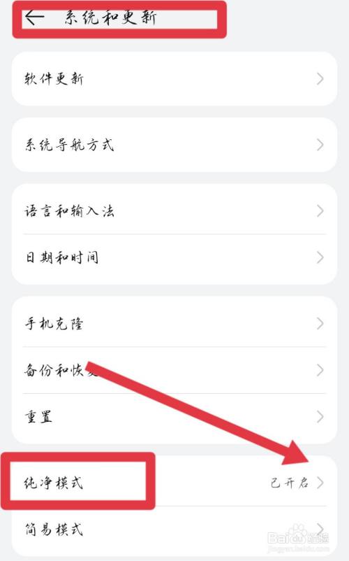 在系统和更新界面,选择纯净模式。