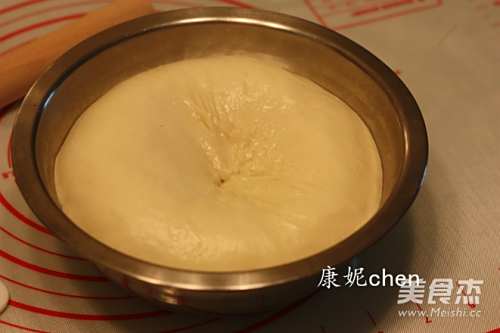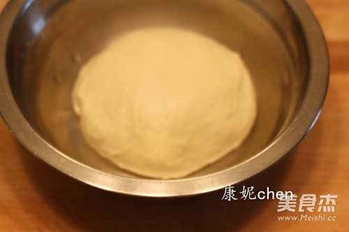 2当面团发酵至原来的2.5倍大,用手戳一个洞,洞口不会回缩,完成基础发酵