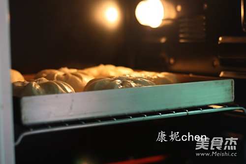 9烤箱上下火170°C预热,在面团表面扫一层清水,放进烤箱中层,上下火烘烤15分钟END