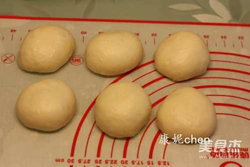 3将面团分成6个小面团,把小面团排气滚圆,放在室温下松弛15分钟