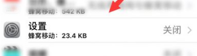 将页面下拉至底端点击“使用无线局域网与蜂窝移动的应用”。在应用列表内找到“设置”并点击进入。